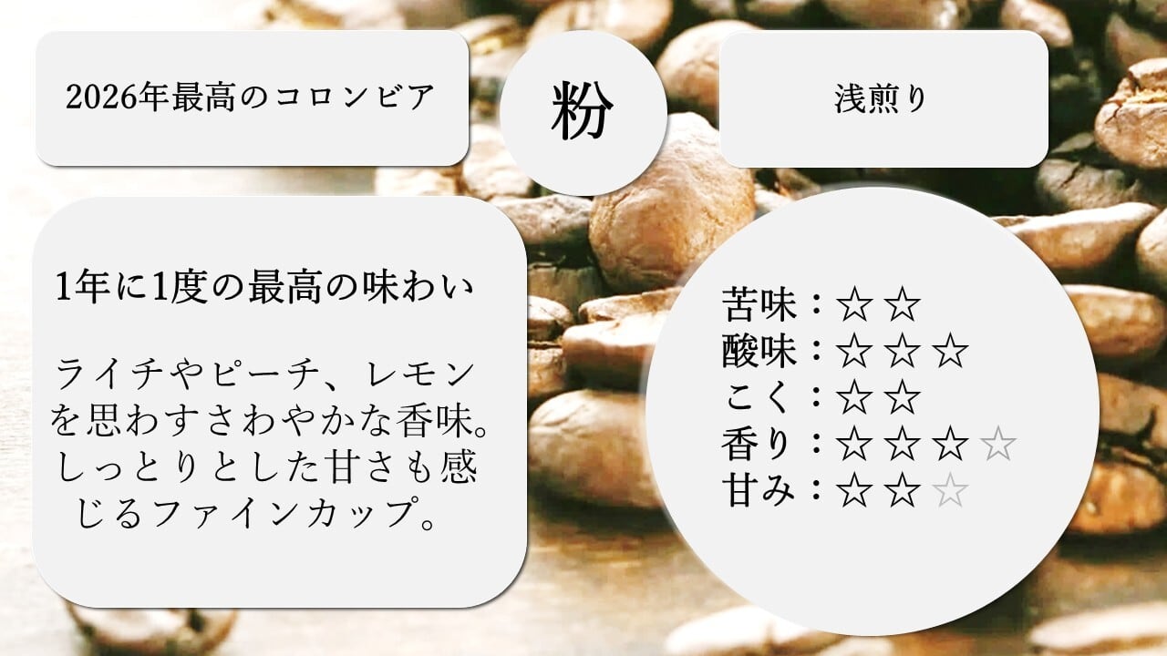 (粉)最高峰の豆 コロンビア 浅煎り 90g