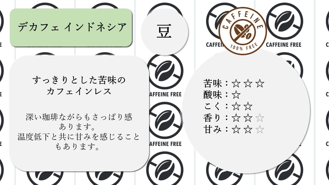 (豆)デカフェ 中深煎り 透き通った苦味のインドネシア