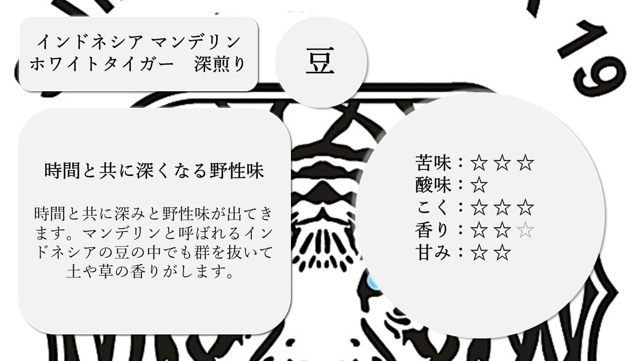 (豆)深煎り 大地と香草の香り 最高級品質の豆 ホワイトタイガー